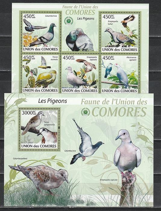 Птицы, Голуби, Коморы 2009, малый лист + блок