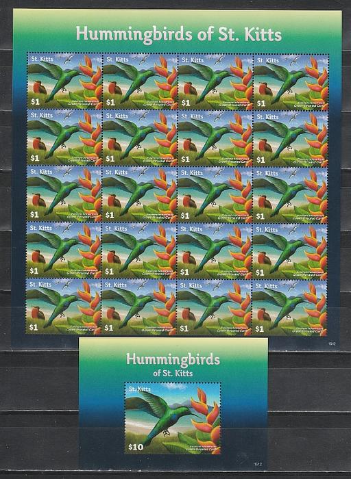 Птицы, Колибри, Сент Китс  2015, лист + блок