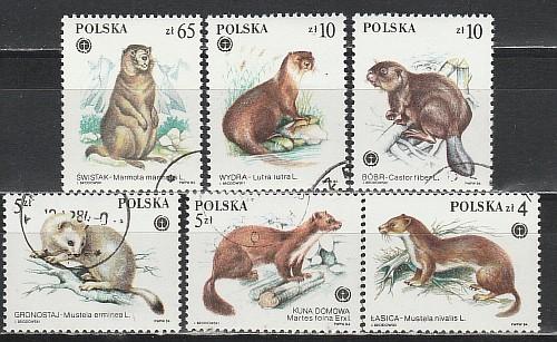 Пушные Звери, Польша 1984 год, 6 гашеных марок