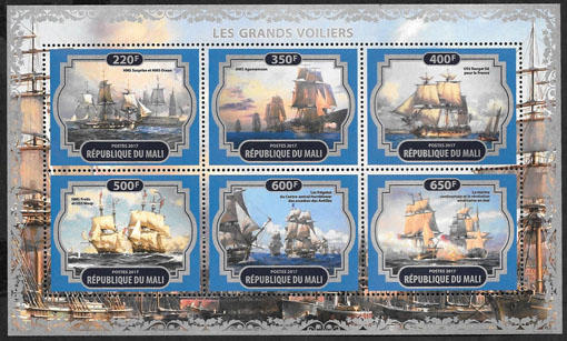 Республика Мали 2017 год. Большие парусники. Малый лист
