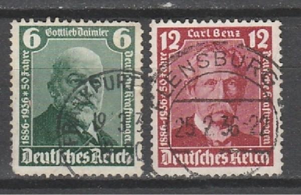 Рейх 1936 год. Автомобильная и мотоциклетная выставка в Берлине. Готтлиб Даймлер и Карл Бенц. 2 гашеных марки