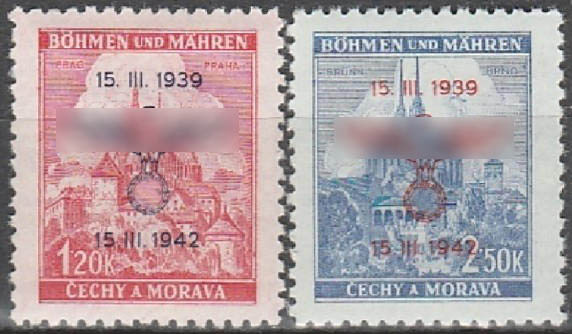 Рейх Богемия 1942 год, Города, Крас. Надпечатка, 2 марки.