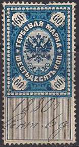 Россия 1880 год. Гербовая марка, 60 копеек, погашена в 1880 году