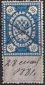Россия 1880 год. Гербовая марка, 60 копеек, погашена в 1881 году