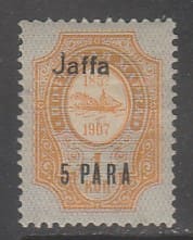 Россия 1909-1910 год. "Русский Левант". РОПиТ. НДП. Яффа, 5 ра/1 к, 1 марка из серии (наклейка)