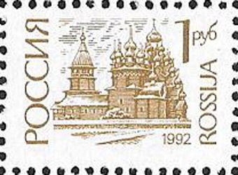 Россия 1992 год. Стандарт. 1 рубль, 1 марка. Простая бумага. Перфорация гребенка 12 1/4 : 11 3/4