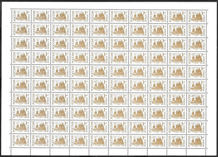 Россия 1992 год. Стандарт. 1 рубль, лист. Мелованная бумага. Перфорация гребенка 12 1/4 : 11 3/4