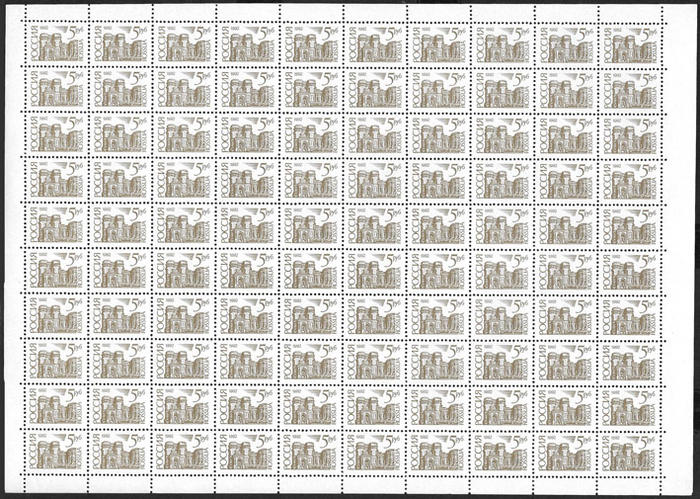 Россия 1992 год. Стандарт. 5 рублей, лист. Простая бумага. Перфорация гребенка 12 1/4 : 11 3/4