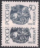 Россия 1992 год. Стандарт (992). Разновидность - разный цвет бумаги