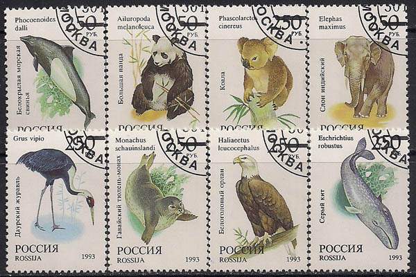 Россия 1993 год. Фауна мира. 8 гашёных марок