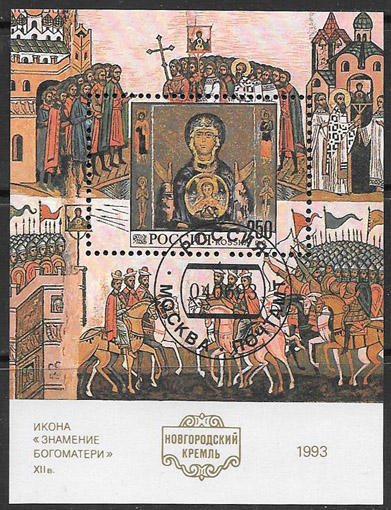 Россия 1993 год. Новгородский Кремль, гашеный блок