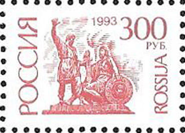 Россия 1993 год. Стандарт. 300 руб., 1 марка. Мелованная бумага. Перфорация гребенка 12 1/4 : 11 3/4