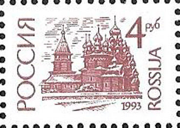 Россия 1993 год. Стандарт. 4 руб., 1 марка. Мелованная. Перфорация гребенка 12 1/4 : 11 3/4