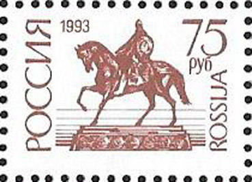 Россия 1993 год. Стандарт. Простая бумага. Перфорация гребенка 12 1/4 : 11 3/4. 75 руб., 1 марка