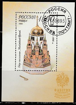 Россия 1995 год. Пасхальное яйцо "Московский Кремль" фирмы Фаберже, блок (гашёный) (241 Бл.9)