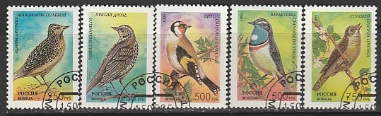 Россия 1995 год. Певчие птицы, 5 марок (гашёные) (221-225)