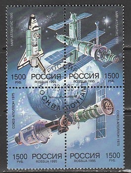 Россия 1995 год. Российско - американское космическое сотрудничество, квартблок