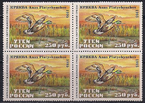 Россия 1995 год. Всероссийское общество охраны природы. Кряква (ном. 250 руб). Квартблок