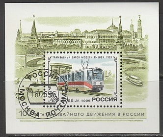 Россия 1996 год. История отечественного трамвая, блок (гашёный) (279 Бл.12)