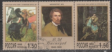 Россия 1998 год. 150 лет со дня рождения художника В.М. Васнецова, сцепка из 2 марок с купоном (гашёные) (420-421)