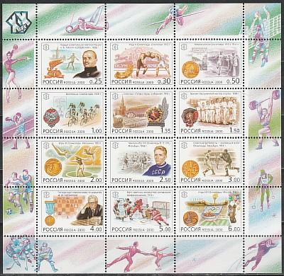 Россия 2000, Россия ХХ Век, Спорт, 12 марок лист