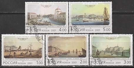 Россия 2001 год. 300 лет Санкт-Петербургу, 5 марок (гашёные) (666-670)