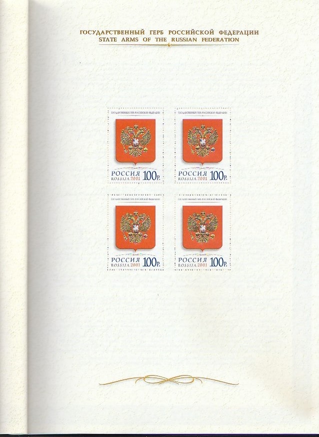 Россия 2001 год. Государственные символы Российской Федерации, сувенирный буклет.