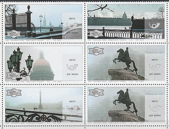 Россия 2001 год. К 300-летию Санкт-Петербурга. Виды города, 6 марок (непочтовые)