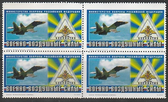 Россия 2003 год. Министерство обороны РФ. ВВС, квартблок (непочтовые) (№ 255)