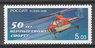 Россия 2008 г, 50 лет Вертолетному Спорту, 1 марка