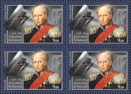 Россия 2008 год, 250 лет со дня рождения Августина Бетанкура (1758-1824), инженера, архитектора, квартблок