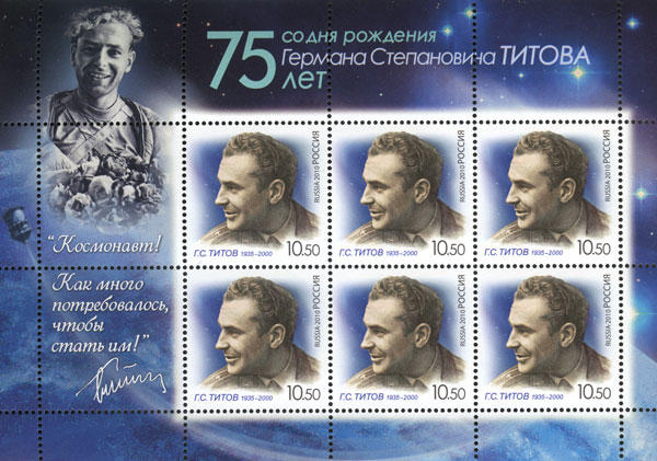 Россия 2010 год. 75 лет со дня рождения Г.С. Титова, лист