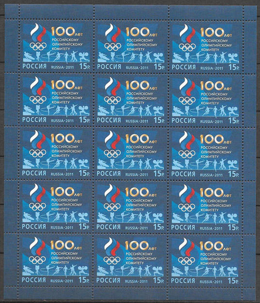 Россия 2011 г. 100 лет Российскому Олимпийскому комитету, лист марок