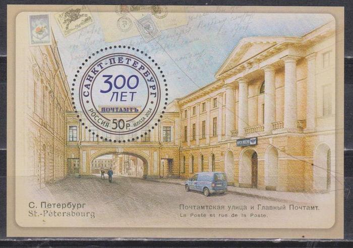 Россия 2014 г, 300 лет С-Пб. Почтамту, блок