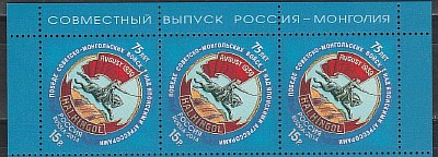Россия 2014 г, Совместный Выпуск РФ и Монголии, 75 лет Победы над Японским Агрессором, верхняя полоса