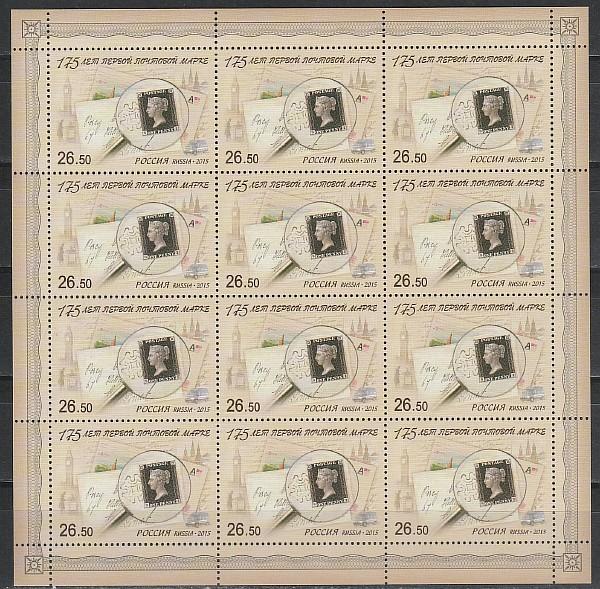 Россия 2015 г, год 175 лет Первой Марке, лист