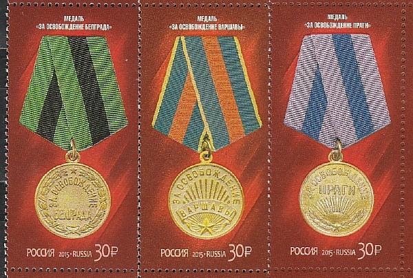 Россия 2015 год, К 70-летию Победы, Медали, 3 марки