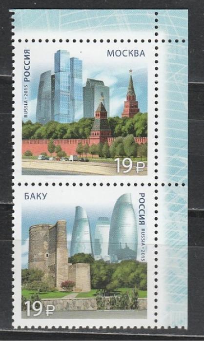 Россия 2015 год, Совместный Выпуск РФ - Азербайджан, Архитектура, верт. пара марок