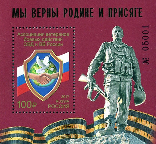 Россия 2017 год. Почтовый блок Ассоциация ветеранов боевых действий ОВД и ВВ России. Тип II, блок НОМЕРНОЙ