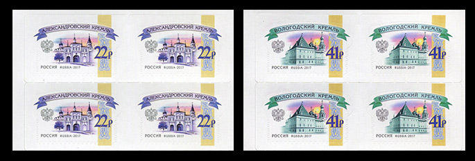 Россия 2017 год. Стандарт. Российские кремли. Александровский и Вологодский кремли, 2 квартблока