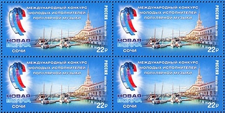 На почтовой марке изображён Сочинский морской торговый порт и логотип Международного конкурса молодых исполнителей популярной музыки «Новая Волна».