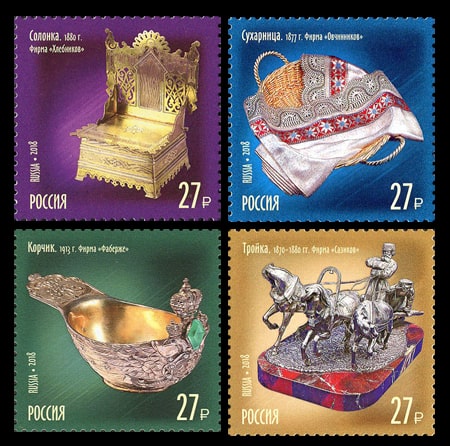 Россия 2018 год. Сокровища России. Ювелиры, 4 марки