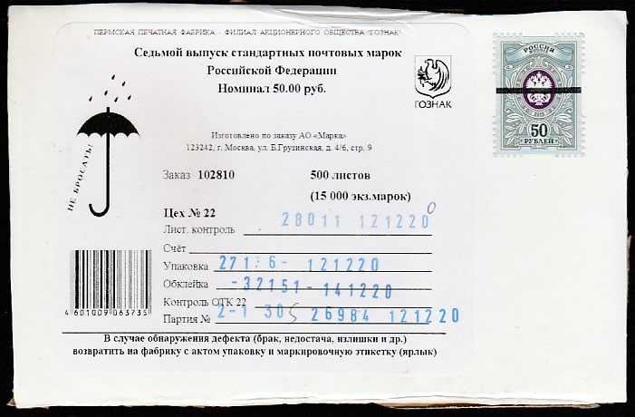 Россия 2019 год. VII выпуск стандартных почтовых марок РФ. "Орлы", ном. 50 руб, 1 марка (анулянт)