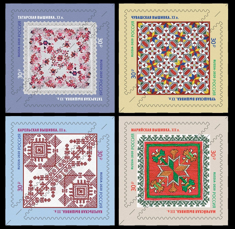 Россия 2020 год. Декоративно-прикладное искусство России. Вышивка, 4 сцепки тет-беш