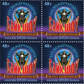 На почтовой марке изображена символика мотоклуба и название шоу.