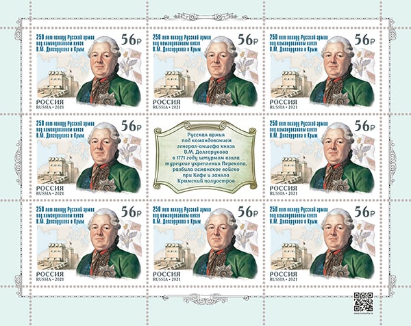Россия 2021 год. 250 лет выходу Русской армии под командованием князя В.М. Долгорукова в Крым, лист