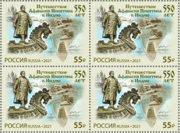 Россия 2021 год. 550 лет путешествию Афанасия Никитина в Индию, квартблок