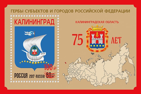 На почтовом блоке 2017 года серии «Гербы городов и субъектов Российской Федерации» выполнена надпечатка нового номинала и памятного текста.
