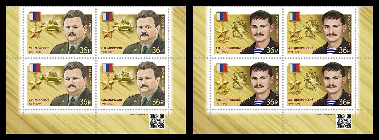 Россия 2021 год, Серия «Герои Российской Федерации», 2 квартблокаДнепровский Андрей Владимирович (1971–1995) — заместитель командира группы специального назначения Тихоокеанского флота ВМФ России, прапорщик.