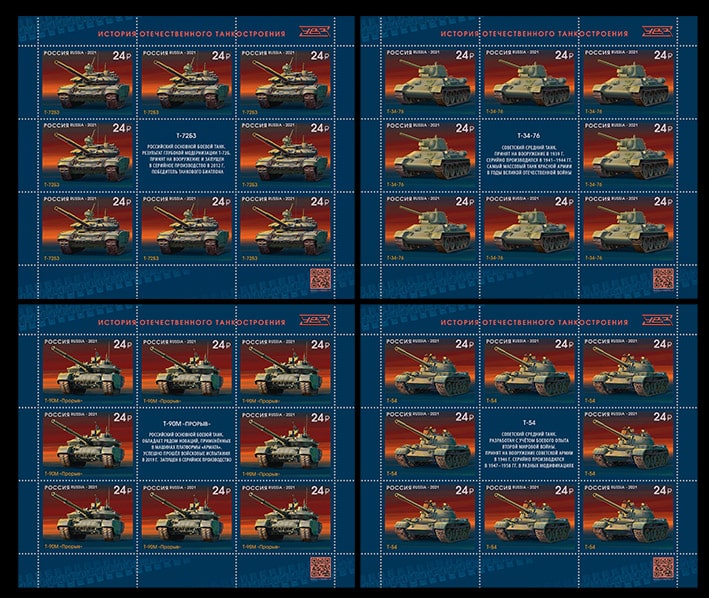 Россия 2021 год. Серия "История отечественного танкостроения", 4 листа